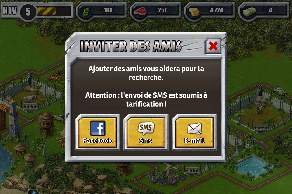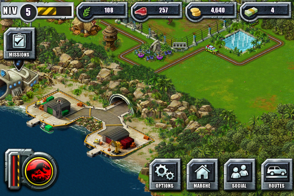 - Conçu pour vous permettre de jouer avec vos amis Facebook et d’autres fans de Jurassic Park