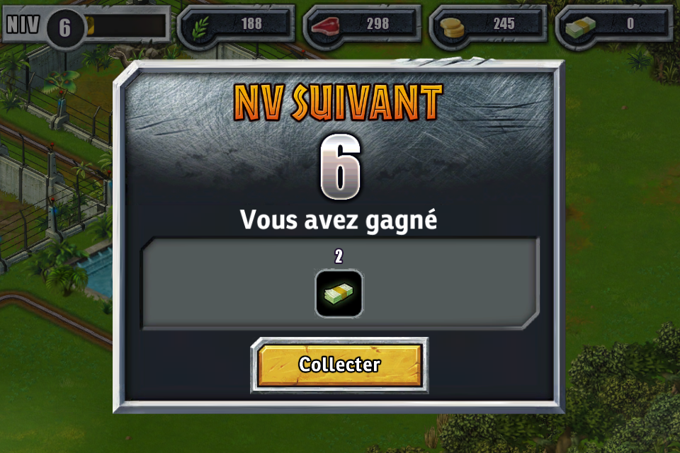 Vous devez atteindre le niveau 10 pour construire votre parc aquatique et découvrir de nouvelles espèces de dinosaures !