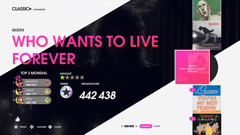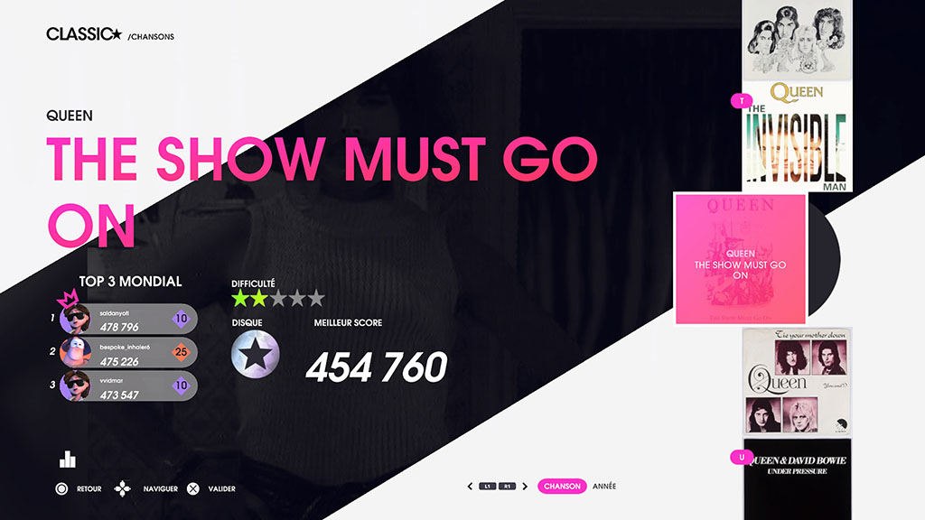 Côté immersion avec le groupe de rock britannique, Let’s Sing Queen trouve très rapidement ses limites car à part des avatars spécialement créés pour l’occasion et les clips qui défilent lorsque l’on chante, nous retrouvons un jeu Let’s Sing totalement classique alors la question peut rapidement se poser que l’intérêt de créer un jeu à part entière ! Un DLC n’aurait-il pas été suffisant ? De même que si vous n’êtes pas un très grand fan de Queen, allez-vous passer 1h58 à chanter tout les morceaux ? De mon côté, je me suis tout de même amusé à reprendre les plus célèbres des morceaux du groupe Queen, je ne me suis pas tenté à plus, principalement du fait de mon niveau d’anglais minable et je me laisserai à coup sûr tenté si venait à sortir de futurs opus à thématique et verrai bien débarquer un jour un spécial “Abba” ou “Disney” !