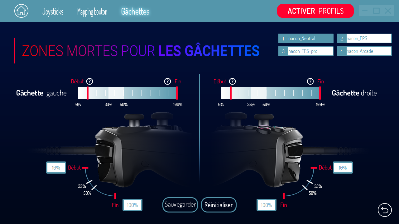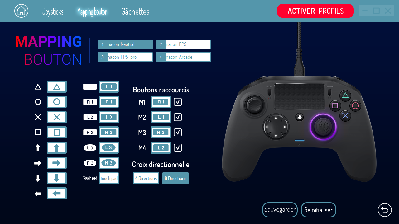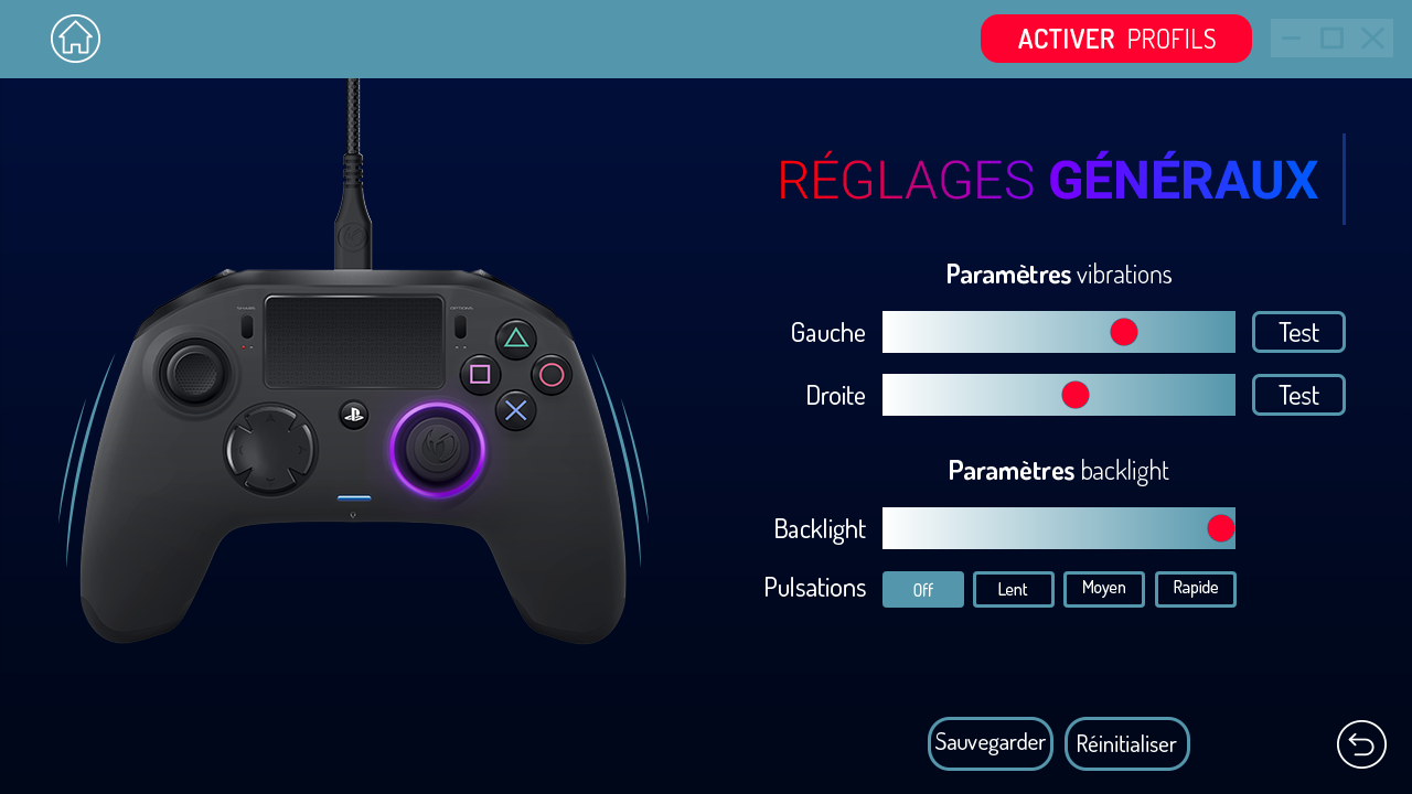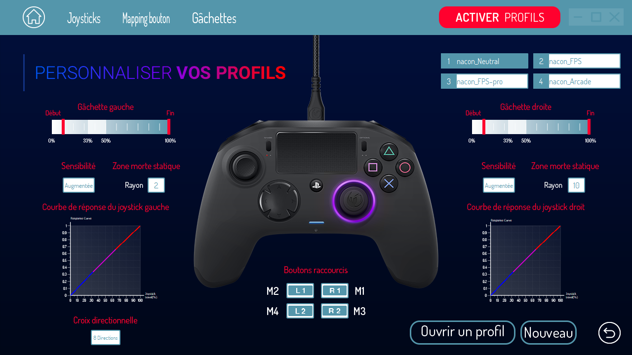 Parlons maintenant de la manette ! Pourquoi est-elle si spéciale ? Tout simplement de part ses possibilités de personnalisation qui vont vous permettre de vous rapprocher de la perfection de jeu ! Vous ne ferez plus qu’un avec elle lorsque vous aurez pris le temps de la configurer car effectivement, vous pouvez directement la prendre en main et jouer à vos jeux préférés mais quitte à acheter une telle manette, il faut prendre le temps de la configurer via le programme proposé sur PC et MAC et téléchargeable sur le site officiel de la marque. En vous rendant sur le site, vous pourrez même trouver des profils proposez par d’autres gamers et pourquoi pas proposer les vôtres !